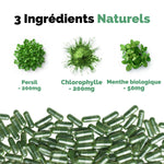 Chlorophylle (200 mg) – se lie aux composés responsables des odeurs et les élimine